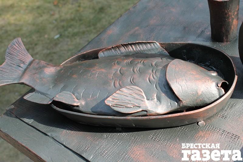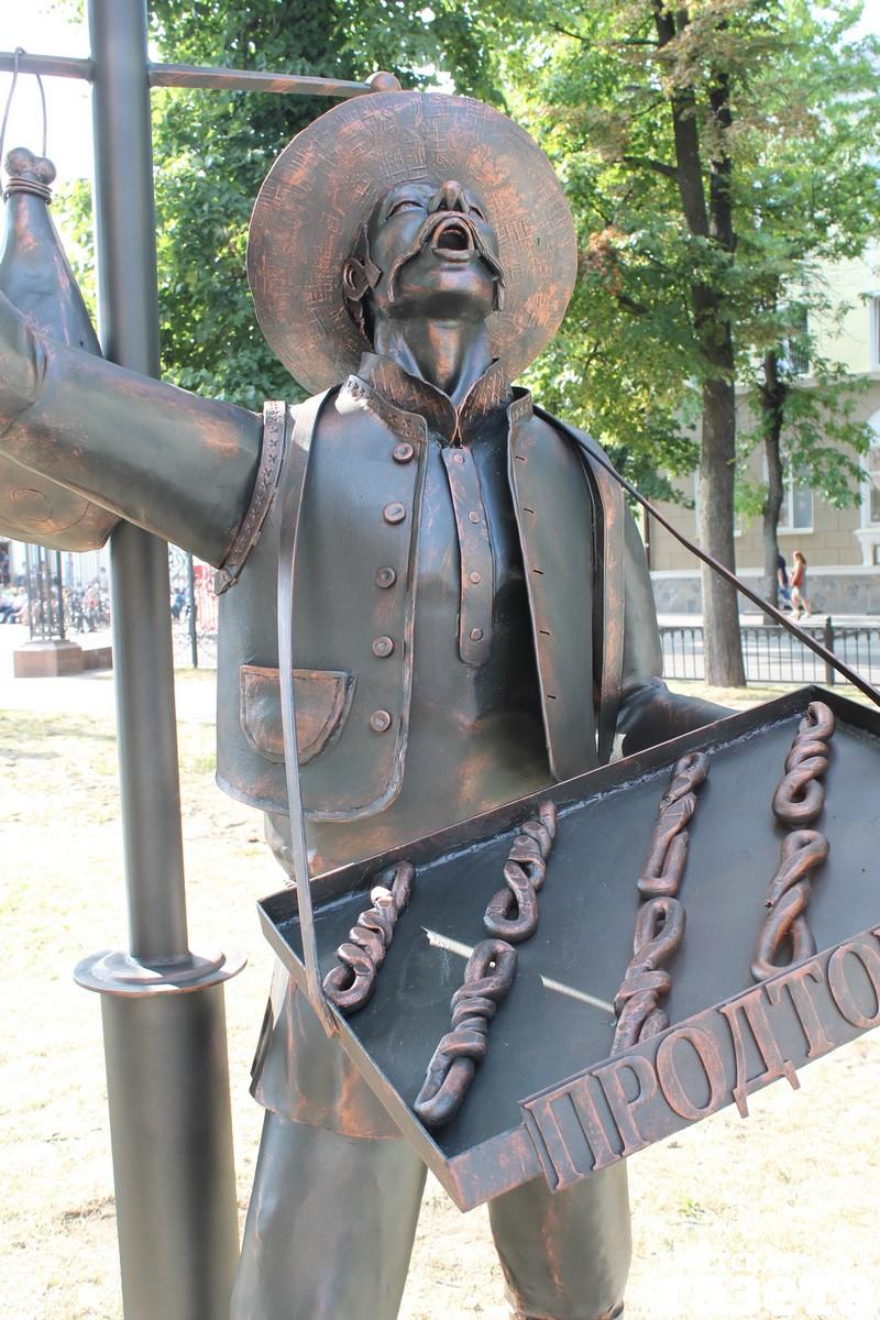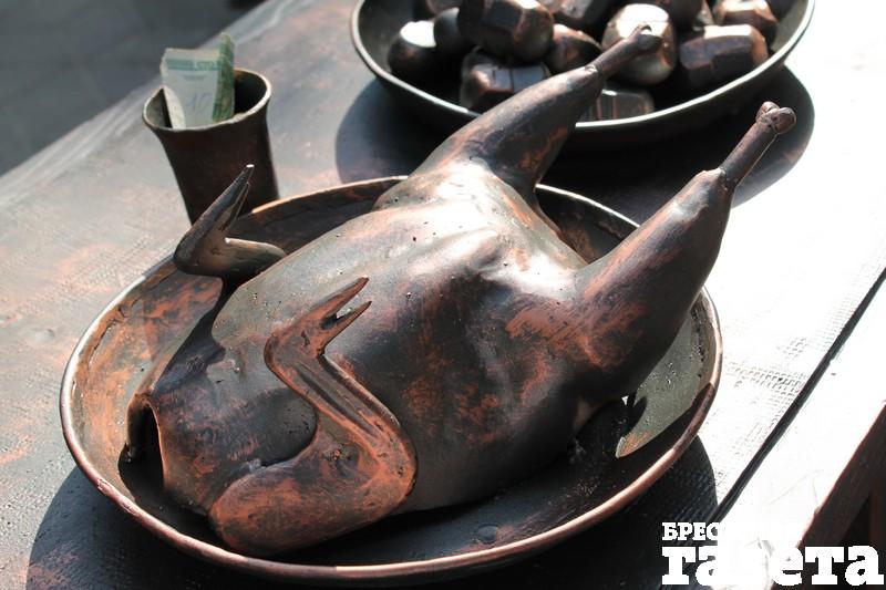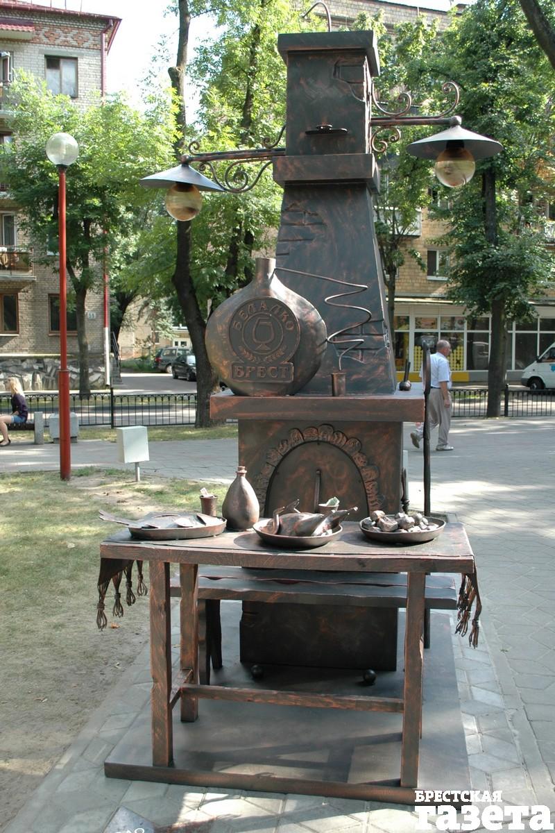 Появился на ул. Гоголя мольберт с колбасами, хитрый Купидон, парящий над скамьей, обозначенной как место для поцелуев, скромный зеленый «эко»-фонарь. Одна из скульптурных композиций представляет собой большую печь, перед которой стоит стол с яствами. Желающих «отведать» кованой курочки и картошки оказалось немало.