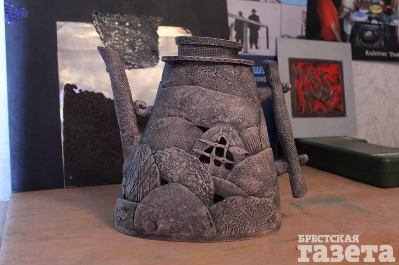 Учился Петр Кузьмич на отделении «Керамика» кафедры декоративно-прикладного искусства. Керамикой он занимается и сейчас. На столе в мастерской стоит чайник, будто сшитый из пластин глины.