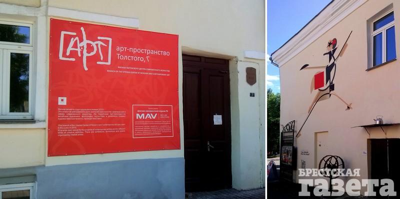 На доме по ул. Советской, 3 разместилось большое граффити от Предка, которое в народе называют «Сотворением мира». Уличный художник известен брестчанам: его работы украшают улицы и нашего города. Только в Витебске они масштабнее. Самая большая работа получилась высотой в три этажа.