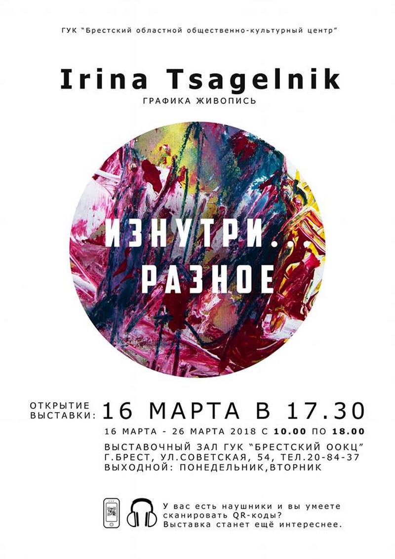 Абстрактные работы Ирины Цагельник — это визуальный ребус, ключом к которому служит в первую очередь название картины. Для тех, кому этого недостаточно, и тех, кто хотел бы глубже вникнуть в ход мыслей художницы, Ирина предлагает еще парочку ключей — на этот раз цифровых. Каждая ее работа снабжена двумя QR-кодами, которые можно отсканировать, чтобы получить развернутое описание концепции и прослушать аудиотрек, соответствующий настроению картины и усиливающий ее восприятие.