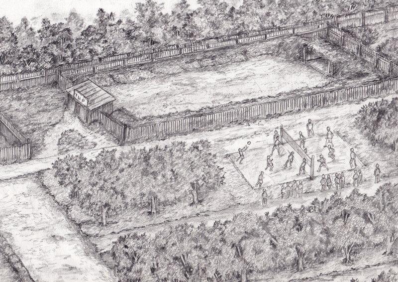 Рядом с кинотеатром находился тир. В основном молодежь сдавала там нормативы ГТО (готов к труду и обороне). Рядом с тиром построили волейбольную площадку, которая была очень популярна. Волейбол в ту пору был спортом номер один, в него играли почти в каждом дворе, рассказал художник.