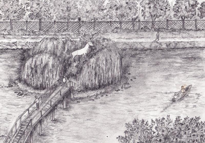 В 1960-х, когда озеро уже входило в парковую территорию, построили деревянный мост. Но острове стоял олень. «Думали, люди будут там собираться. Но там двух минут нельзя было провести, комары съедали начисто. Там ивы разрослись», — вспомнил Губенко. У озера находилась лодочная станция, где можно было напрокат взять катамаран