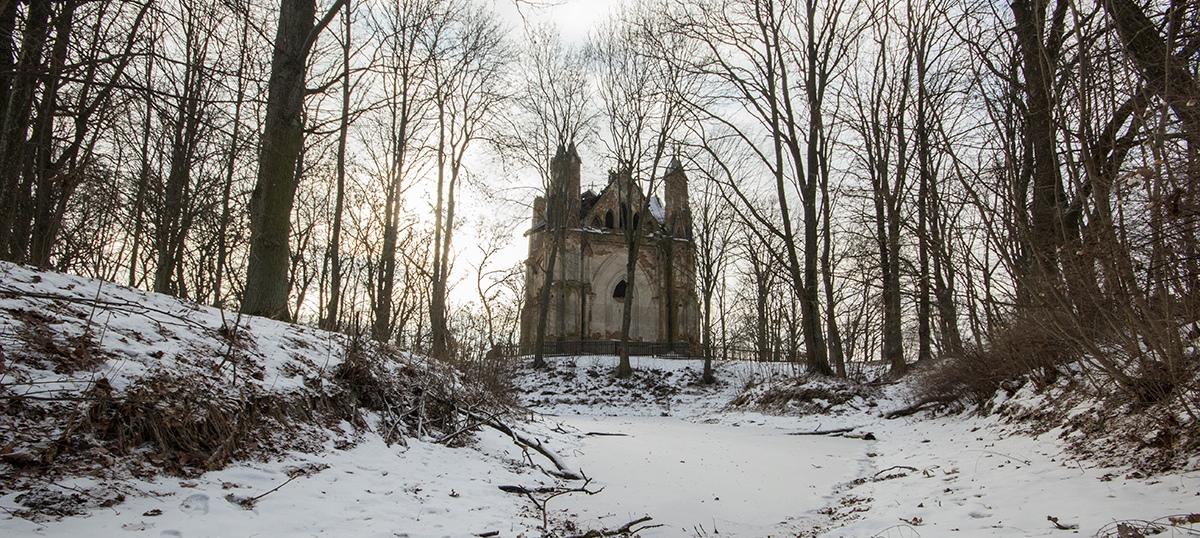 Дыра в крыше, торчащие из-под кровли балки, свисающая сломанная башня, разбросанные кирпичи — если вы давно хотели увидеть один из красивейших и старейших белорусских памятников неоготики, то лучше поспешите: скоро смотреть будет не на что. Берите детей, друзей, коллег, родственников до третьего колена и езжайте в агрогородок Закозель, где посреди старого парка разрушается часовня-усыпальница рода Ожешко 1839 года постройки. Сколько она еще протянет, неизвестно: реставрацию памятника нужно было начинать еще 10 лет назад, но ни тогда, ни сейчас денег на это в бюджете нет, пишет tut.by.