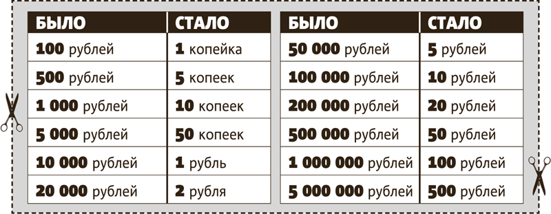 Деноминация - изменение нарицательной стоимости денег. Обычно выражается в «обрезании» некоторого количества нулей со старых купюр и выпуске в обращение новых денег меньшего номинала.