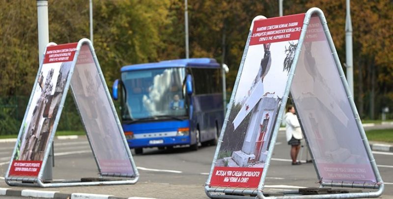 Госпропаганда добралась до границы. В пункте пропуска «Брест» установили стенды с информацией о разрушенных в Польше памятниках воинам-освободителям