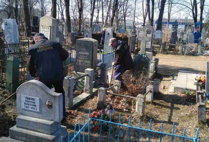 КУП «Брестское спецпредприятие» наряду с другими коммунальными предприятиями нашего города активно включилось в месячник по благоустройству Бреста. На балансе предприятия находится 13 кладбищ, которые необходимо привести в достойный вид к Пасхе и Радонице. Сегодня сотрудники предприятия провели уборку кладбища Тришинское, расположенного по улице Московской. Также запланирована уборка и на других городских кладбищах.