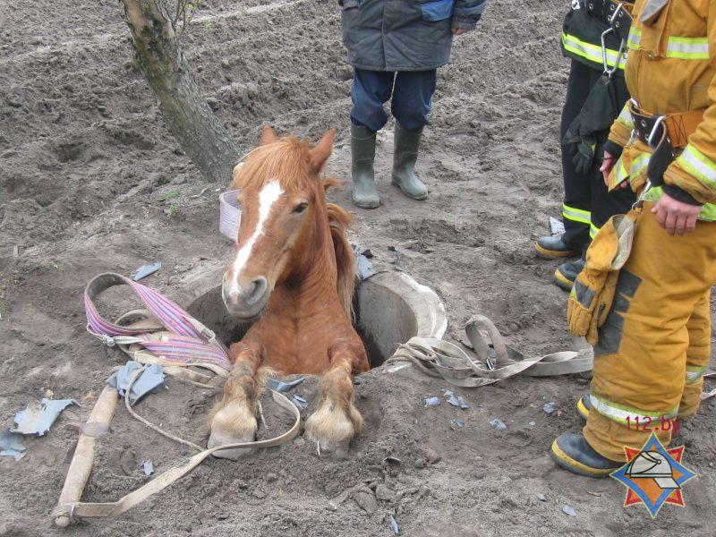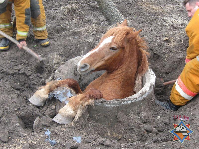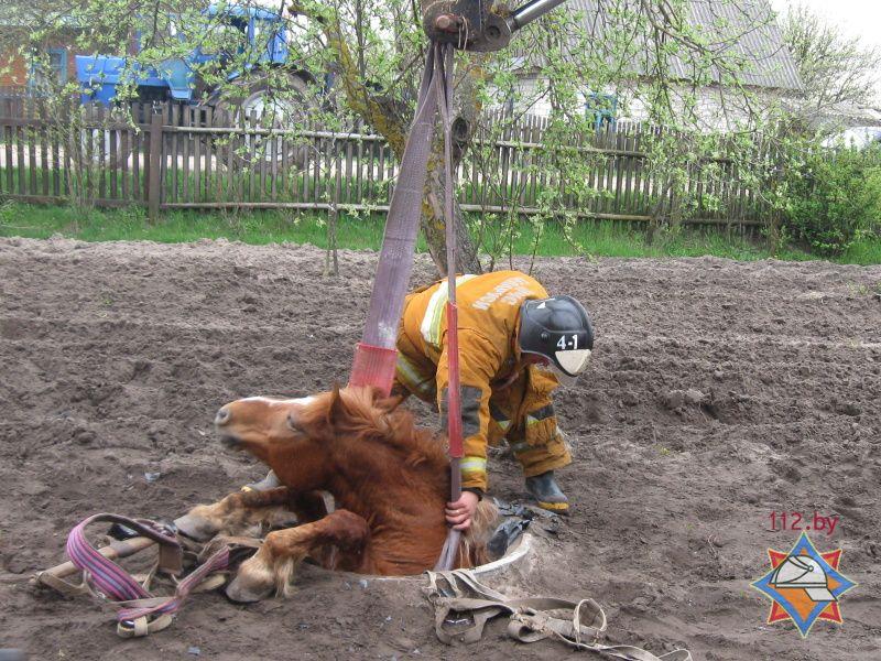 В Березовский райотдел ЧС 19 апреля в 14.05 поступило сообщение о необходимости оказания помощи животному. В деревне Соколово на территории частного подворья по улице Советской в канализационный колодец провалилась лошадь.