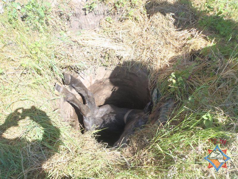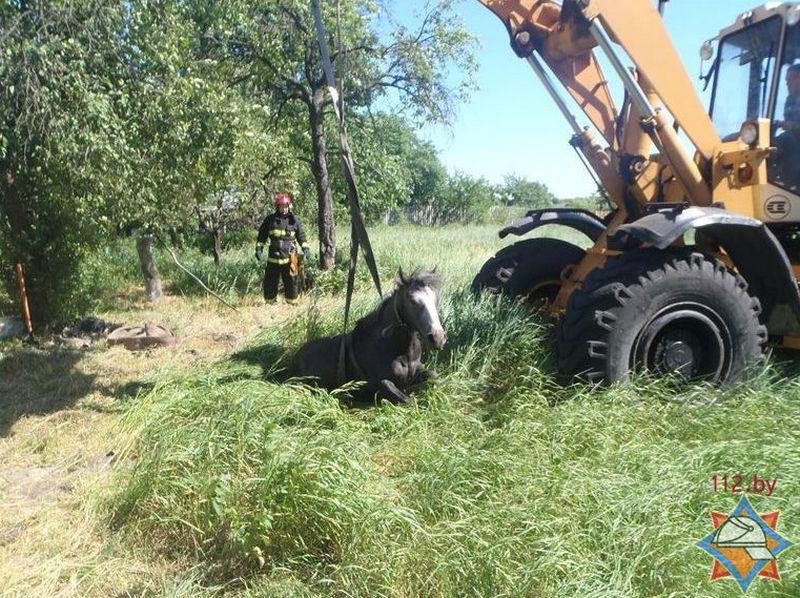 Инцидент произошел в Пинске днем 5 июня. Очевидцы сообщили спасателям, что на заброшенном приусадебном участке по улице Космонавтов в колодец провалилась лошадь и не может выбраться самостоятельно.