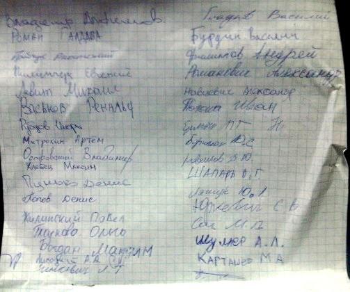 Список задержанных, переданный одним из находящихся в Ленинском РОВД г. Бреста