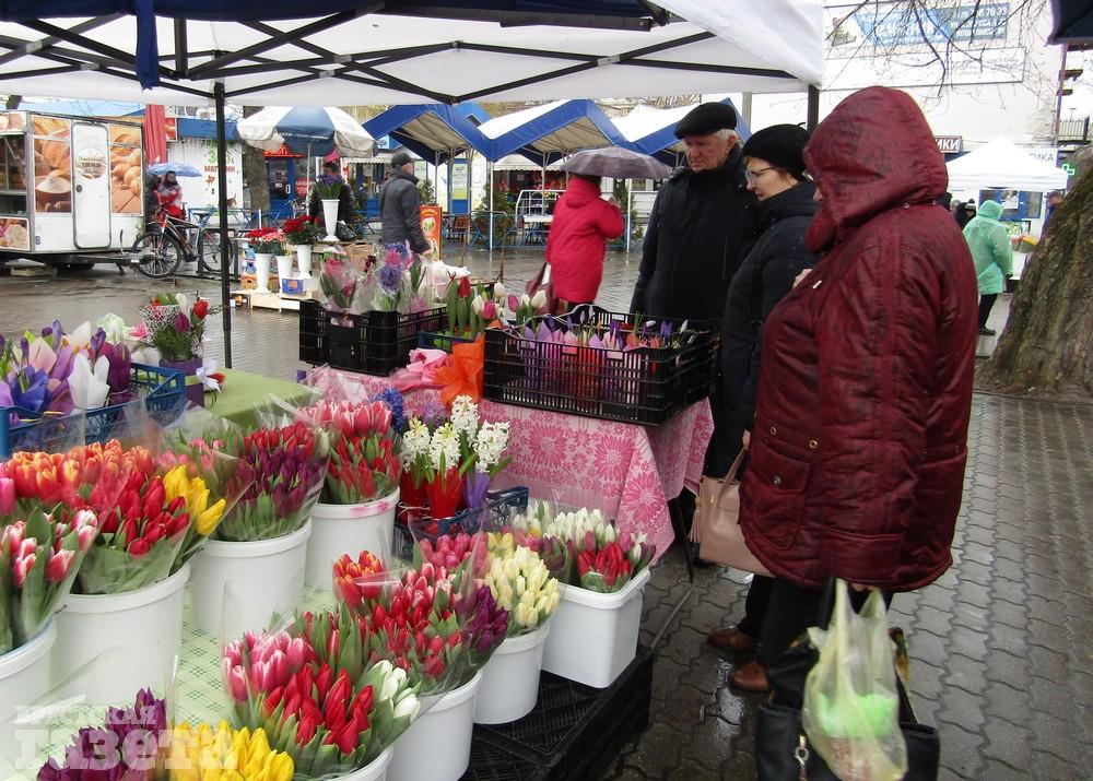 С приближением Международного женского дня в Бресте расширяется цветочная торговля. Несмотря на моросивший дождь, уже днем 4 марта многие горожане останавливались, разглядывали ассортимент и интересовались ценами. Продавцы говорят, что так каждый год перед 8 Марта: за несколько дней люди присматриваются, а покупают в основном ближе к празднику.