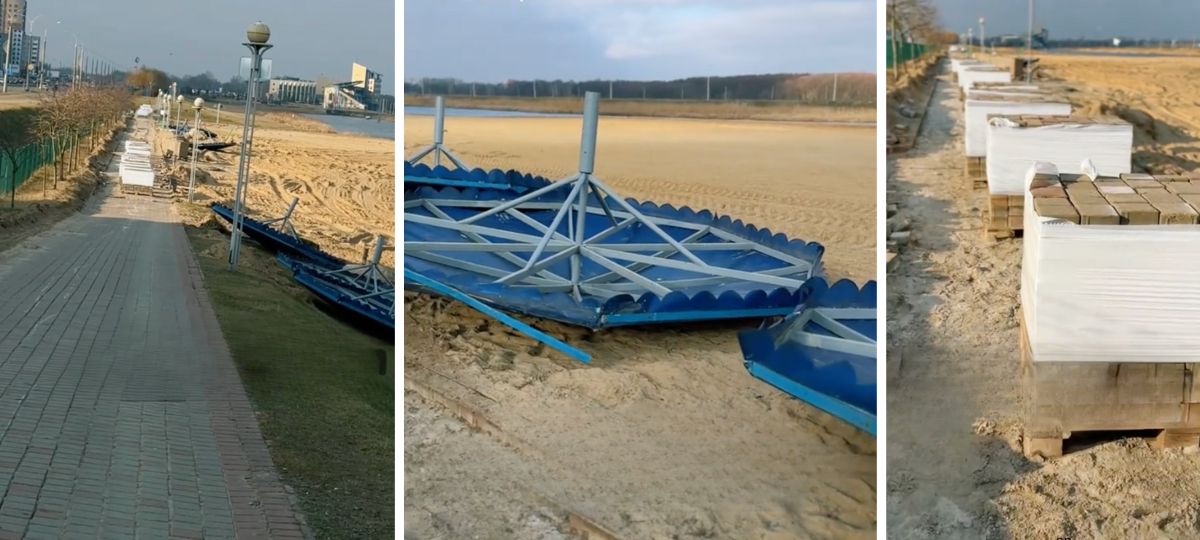 На прошлой неделе власти Бреста отчитались о первых результатах реконструкции пляжа на Гребном канале. В рамках ремонта демонтировали старую тротуарную плитку, скамейки, теневые навесы и ограждения для мусорных контейнеров, провели планировку откосов и очистили прибрежную зону.