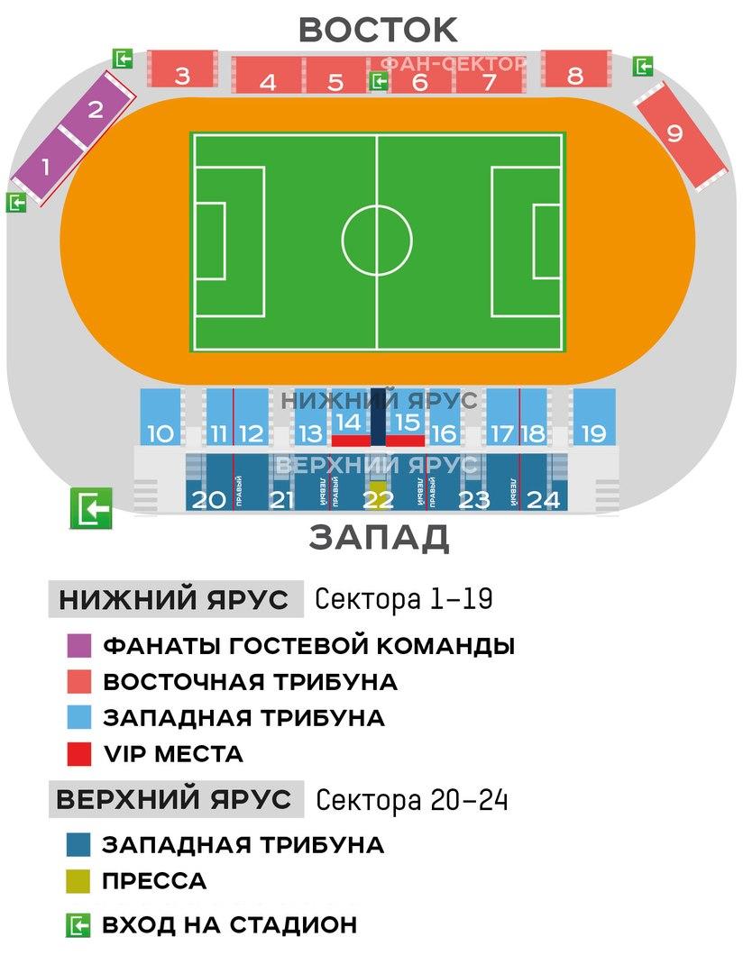Цена билетов: 1 рубль – все секторы восточной трибуны, за исключением секторов 1 и 2 (это секторы для приезжих болельщиков, билет туда стоит 4 рубля).