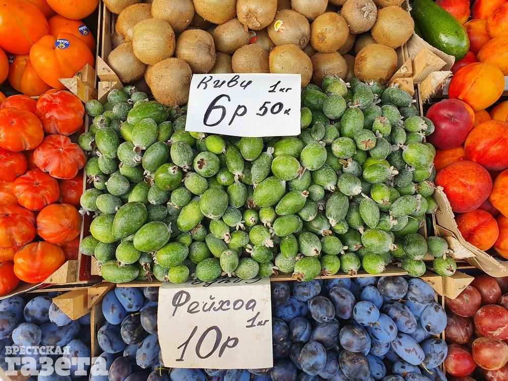 Снова, спустя год, появился и такой полезный фрукт как фейхоа. Его доставляют в Беларусь из Абхазии. Килограмм стоит 10 рублей. Сезон у него очень короткий, поэтому купить его можно всего один месяц в году. Те, кто знает о пользе этого фрукта, закупают его впрок.