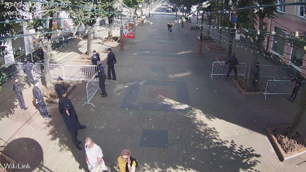 В Бресте на ул. Пушкинской при выходе с пл. Ленина дежурят милиционеры.