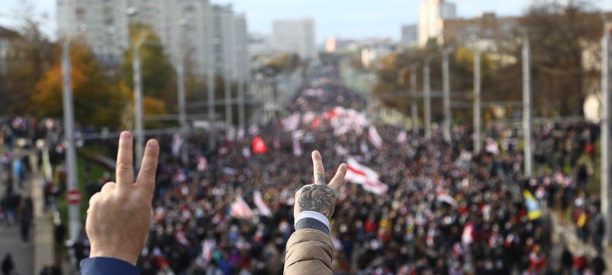 Колонна протестующих заняла проезжую часть возле МотоВелоЗавода в Минске, скандируют «Забастовка!». Численность демонстрантов журналисты издания «Наша Нива» оценивают в десятки тысяч человек.