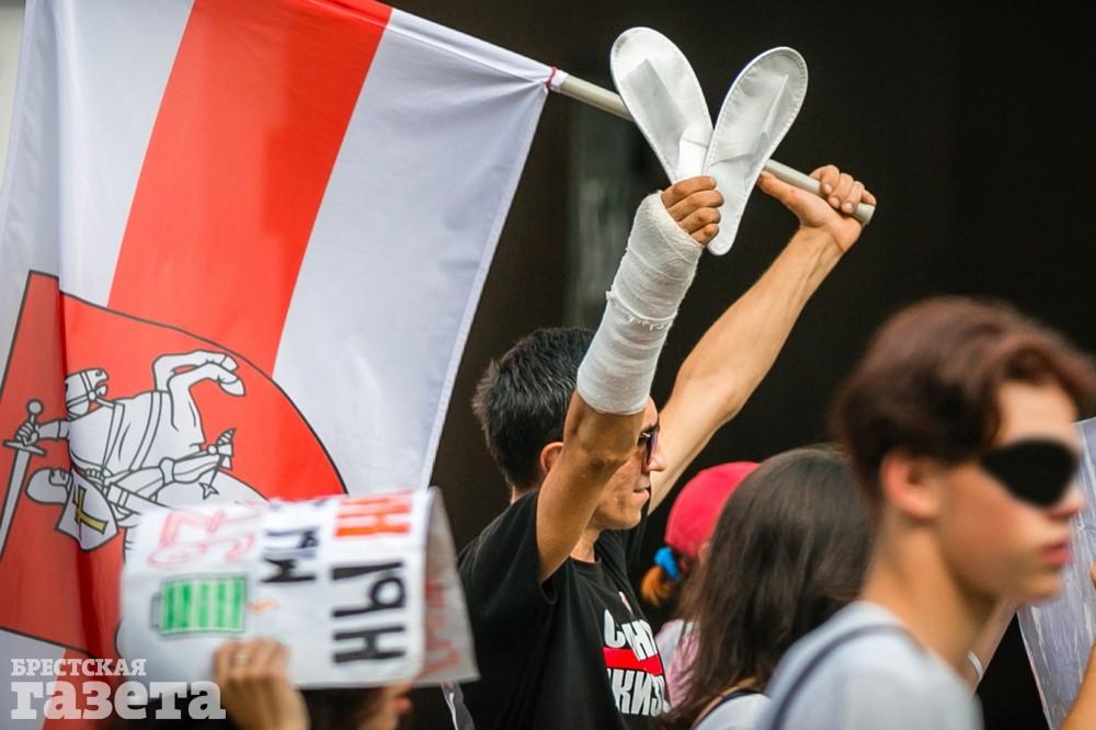 В Бресте сегодня выходили люди с флагами в разных районах города. Это Восток.