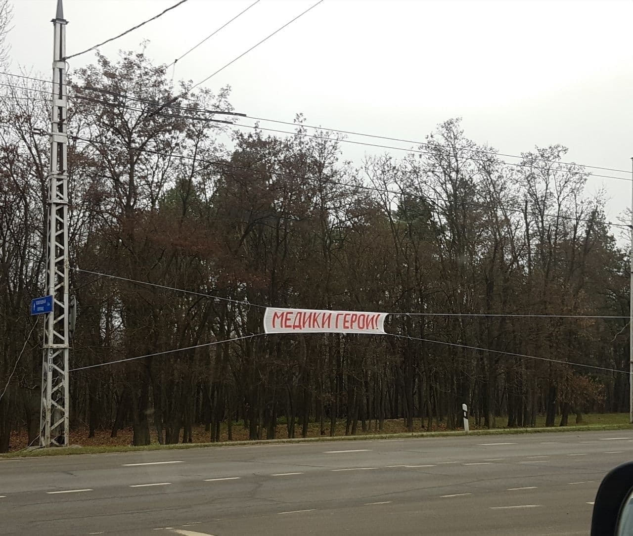 А возле областной больницы в Бресте была замечена такая растяжка.