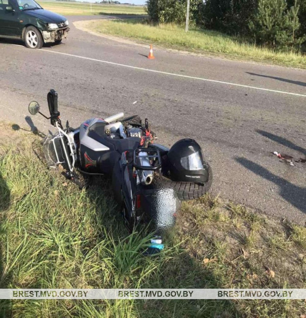 В результате ДТП мотоциклист с травмами госпитализирован. Проводится проверка, сообщает УВД Брестского облисполкома.