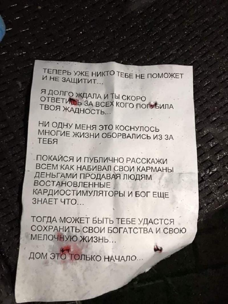 «Что-то удалось сохранить, что-то безвозвратно потеряно. Сгорели беседка, часть дома, подвал, он был открыт, мы его не закрыли на замок. В подвале была небольшая баня — она полностью выгорела. Проще говоря, три не зависимых друг от друга очага возгорания. Пожарные считают, что это поджог. Мало того, стоял стул на улице, на стуле — кукла с окровавленными глазами, приколотая скальпелем. И угрожающая записка, что я должен покаяться, что «продавал какие-то стимуляторы, бывшие в употреблении», — это полный бред! И написано в конце, что это только начало», – рассказал академик.
