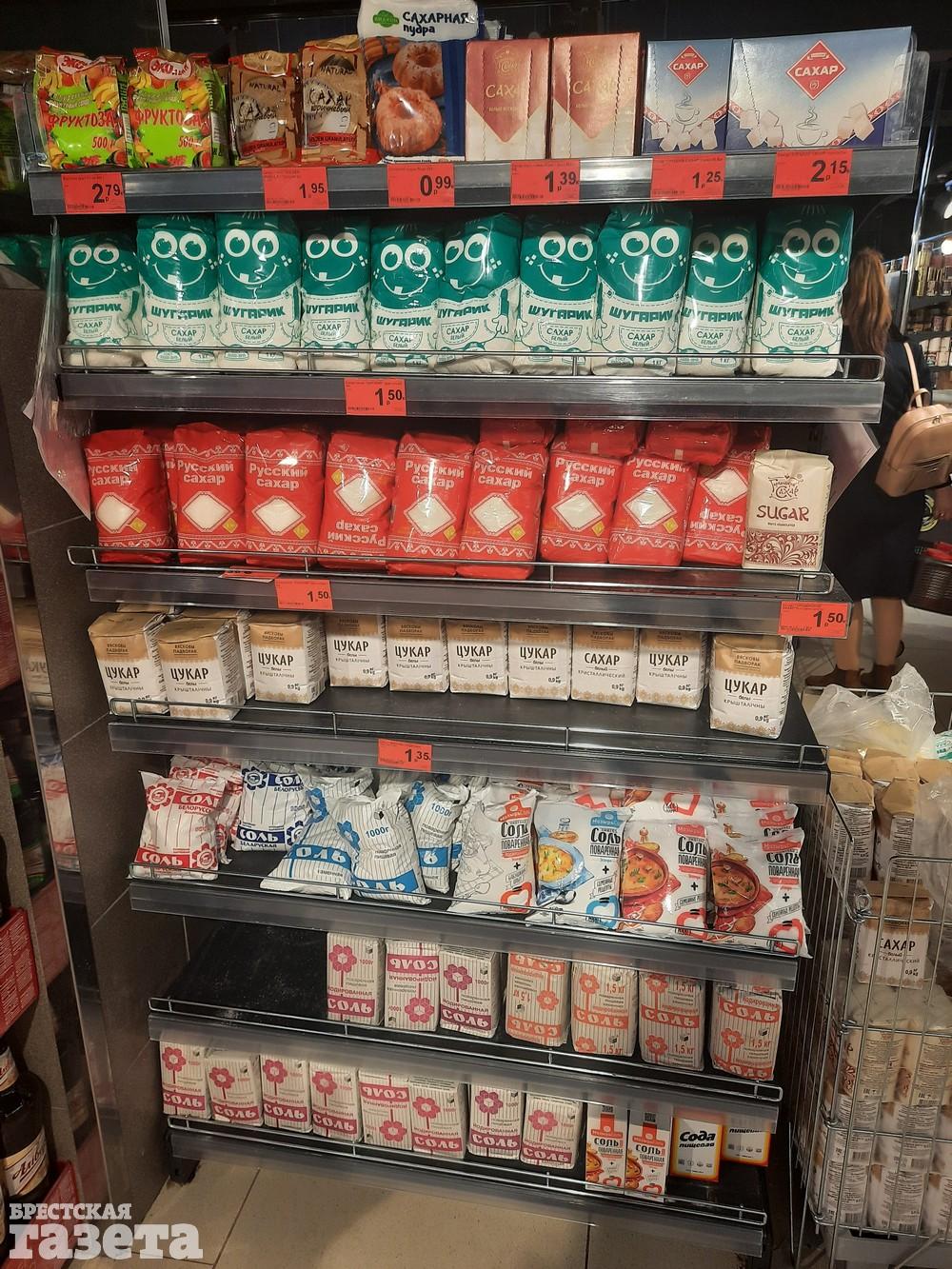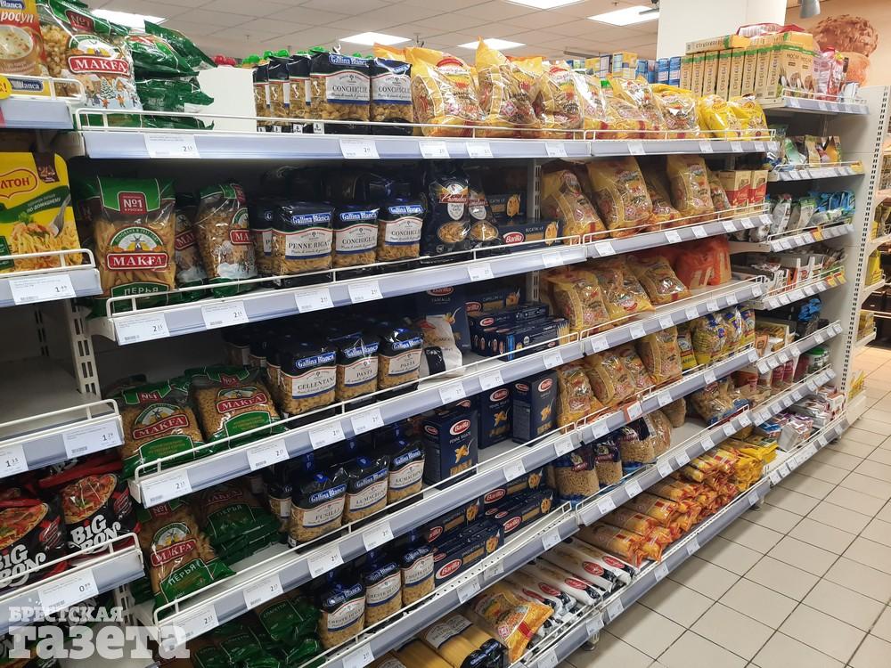 В одном из магазинов крупной торговой сети на улице Комсомольской в Бресте людей днем понедельника не много. Берут все как обычно: по несколько фруктов, пачку крупы или сахара. На полках тоже всего хватает. Товар добавляют в режиме реального времени.