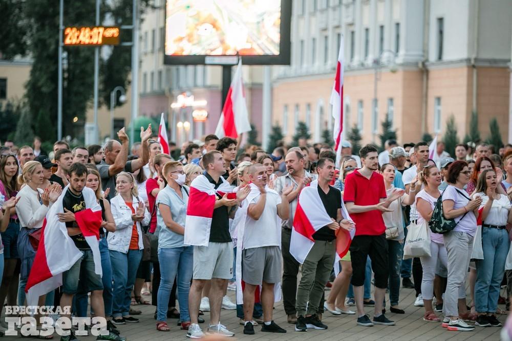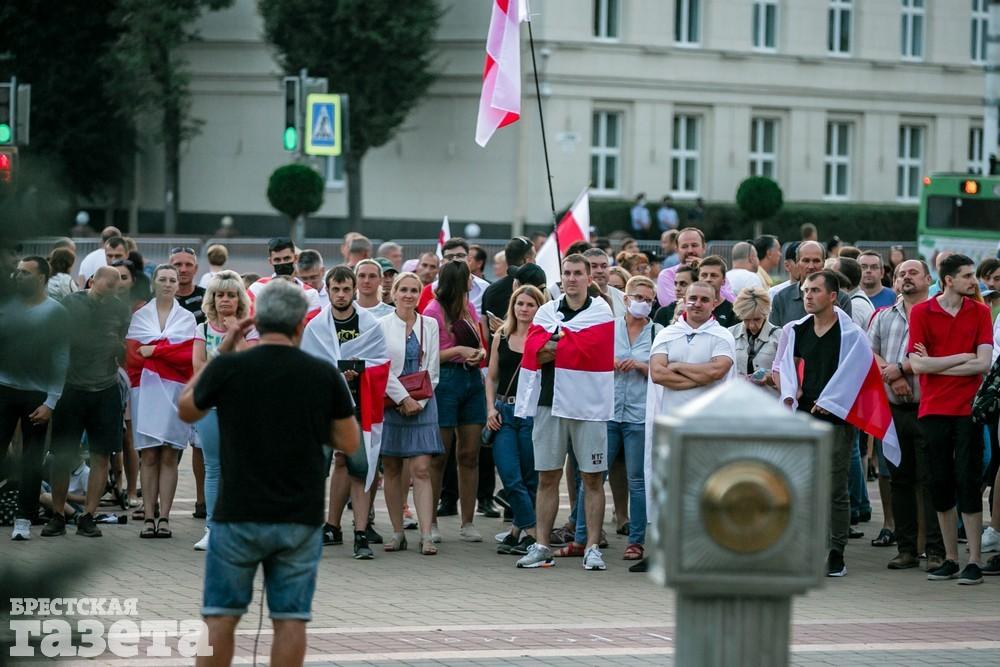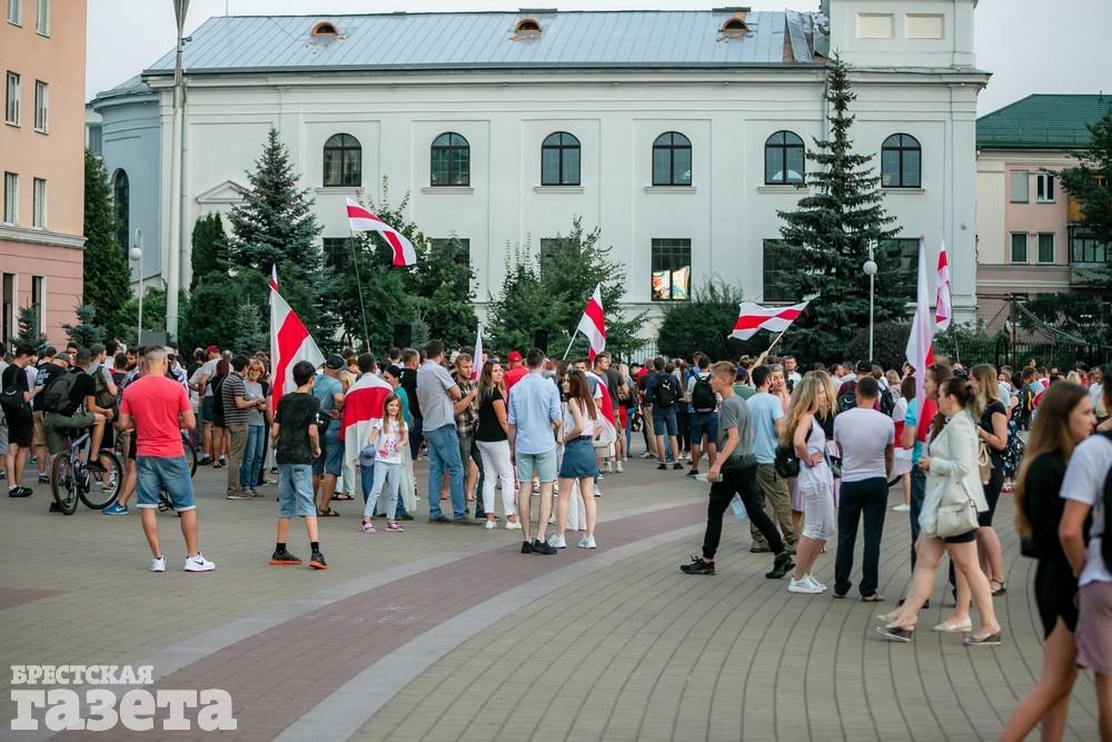 Мирные акции протеста в прошедший четверг прошли не только на центральной площади Бреста, но и на пешеходной улице Советской. Мирные протестующие продолжают выходить на улицы с плакатами и бело-красно-белыми флагами.