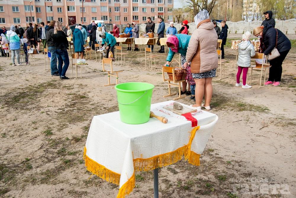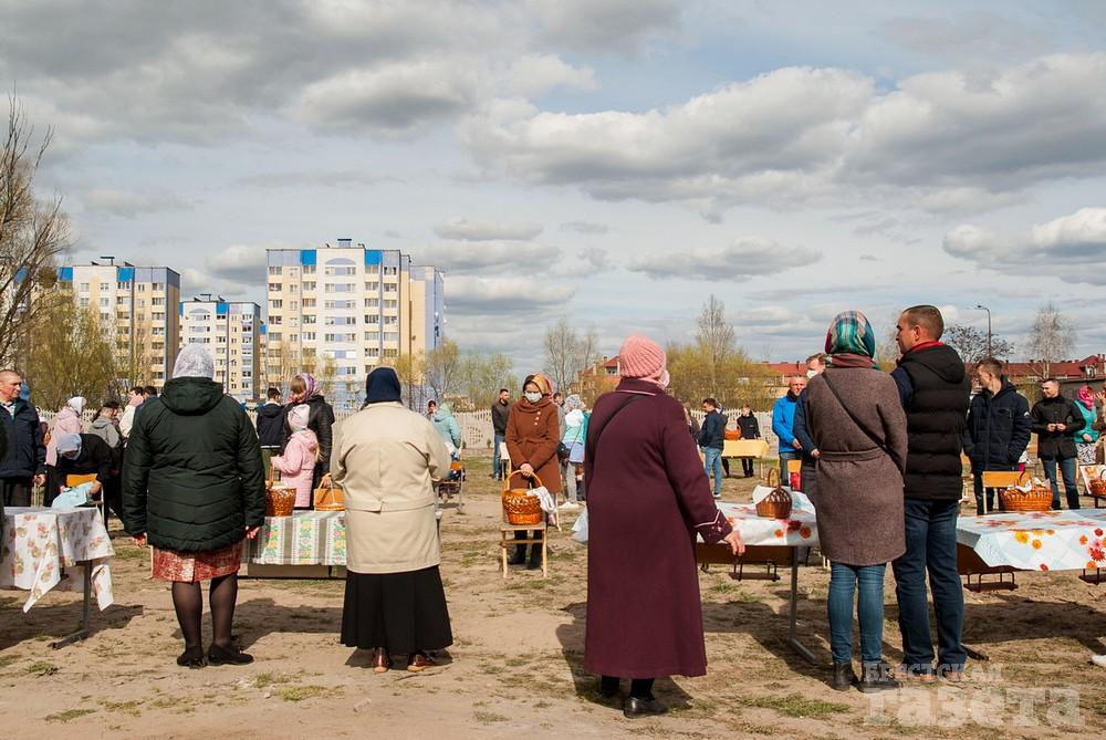 Некоторые брестчане не изменили своей традиции и, несмотря на рекомендации остаться дома, пришли в храм освящать куличи в субботу накануне Пасхи.