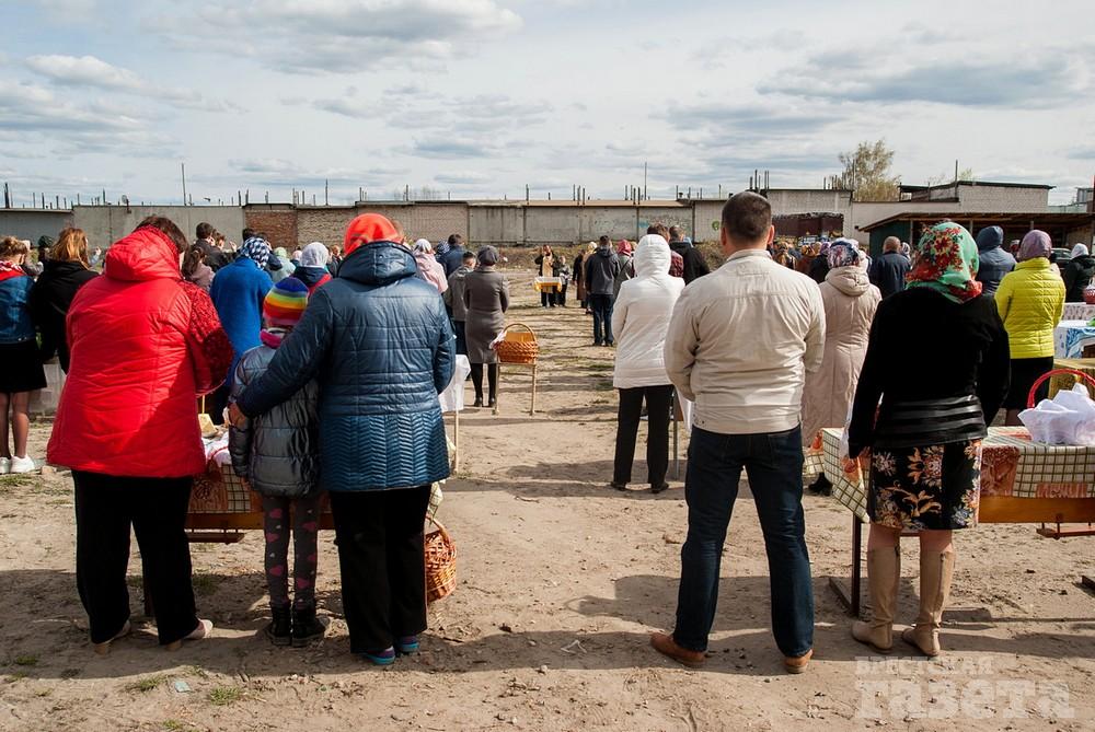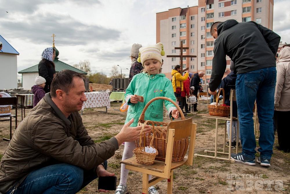 В храм в честь святого праведного Иоанна Русского, который находится в микрорайоне Ковалево в районе жилой застройки между улицами Суворова и Ясеневой, пришло не мало людей. Некоторые из них были в защитных масках. Люди ставили корзинки со снедью на специальные столы на улице.