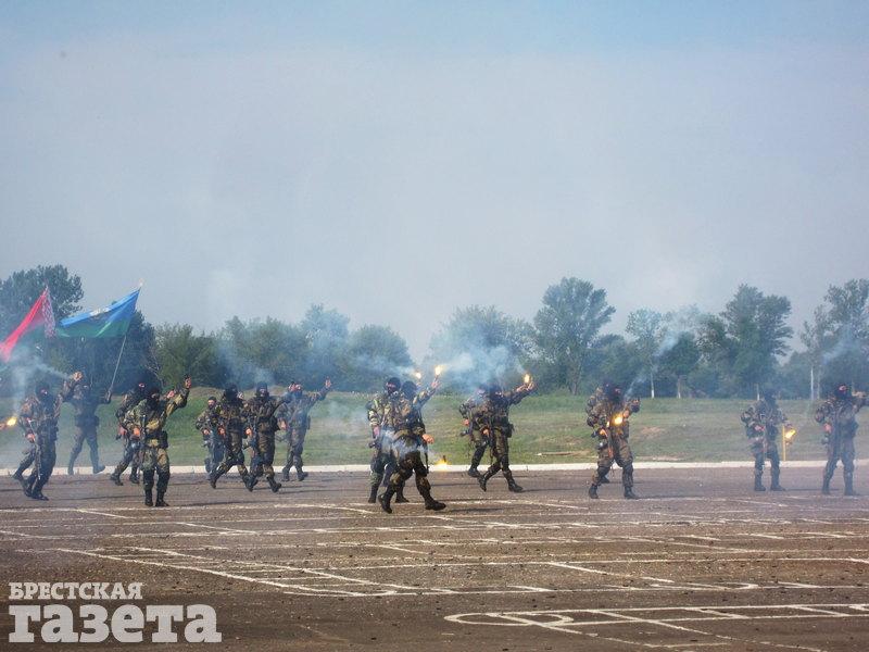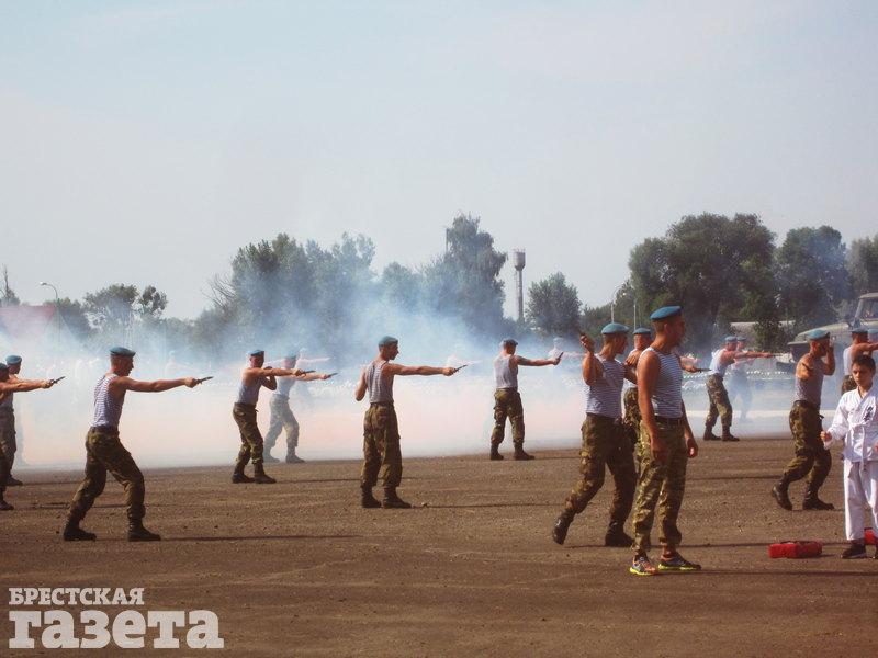 Праздничные мероприятия проходили утром 2 августа в 38-й отдельной гвардейской Венской Краснознаменной десантно-штурмовой бригаде. Десантники представили зрителям шоу с боевыми эпизодами: взрывами, стрельбой из автоматов и зениток, прыжками с парашютом. Также подготовленные бойцы лежали на гвоздях, десантировались из вертолета с небольшой высоты и показали «вальс зениток», в котором кроме девушек в красивых платьях «танцевала» и военная техника.