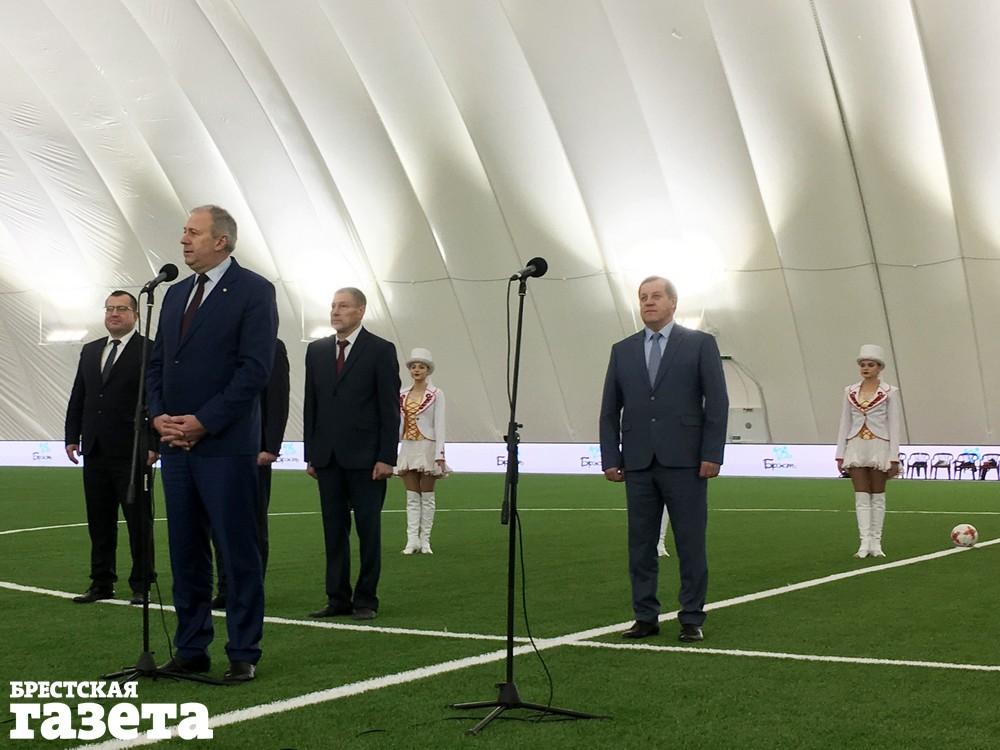 «Город Брест издавна славится своими футбольными традициями, он подготовил много спортсменов для Беларуси по всем видам спорта, — сказал премьер-министр Сергей Румас. — Мне как руководителю Федерации футбола приятно, что в Бресте проживают самые преданные футбольные болельщики. Уже два года подряд они занимают первое место по посещаемости на своих домашних матчах. Поэтому от имени Белорусской федерации футбола я хочу поздравить брестчан с этим прекрасным подарком к 1000-летию города — футбольным манежем!»