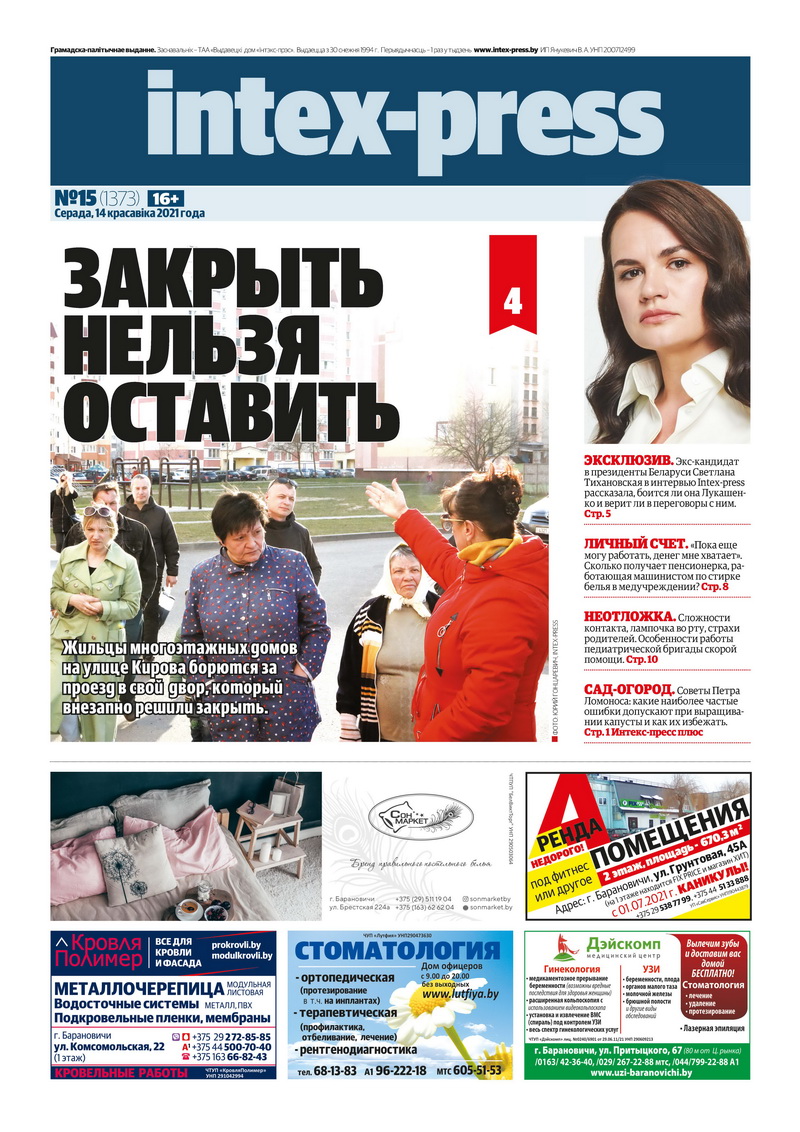 Там было сказано, что в ходе мониторинга СМИ установлено, что в номере Intex-press от 14 апреля было опубликовано интервью со Светланой Тихановской, скрывающейся от органов уголовного преследования, в отношении которой возбужден ряд дел за совершение действий, направленных на причинение вреда национальной безопасности Республики Беларусь, выступающей в том числе от имени Координационного Совета, «являющегося экстремистским формированием».
