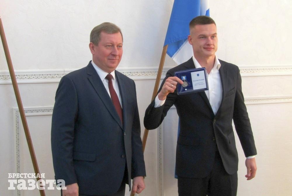 Всем членам команды председатель горисполкома вручил награды, изготовленные к тысячелетию Бреста.