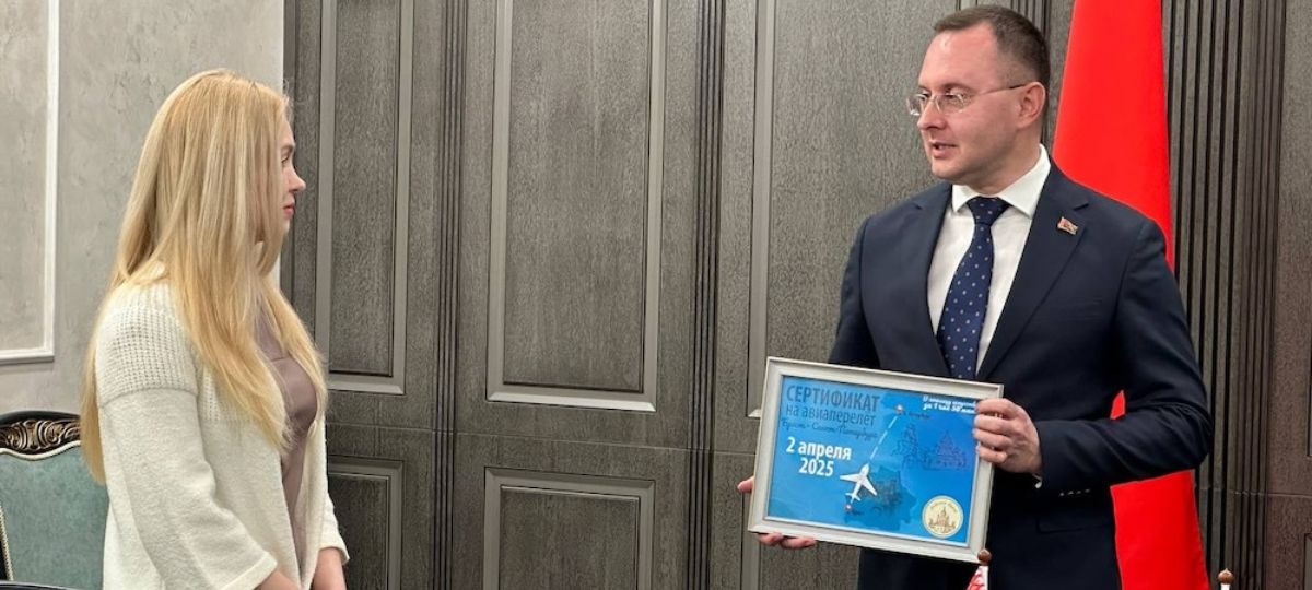 В Брестском горисполкоме состоялась торжественная церемония награждения победителя по придумыванию нового слогана о нашем городе. Председатель горисполкома Сергей Лободинский и генеральный консул Российской Федерации в Бресте Олег Мурашев лично вручили жене победителя главный приз – билет на первый авиарейс Брест-Санкт-Петербург и экскурсию в Эрмитаж.