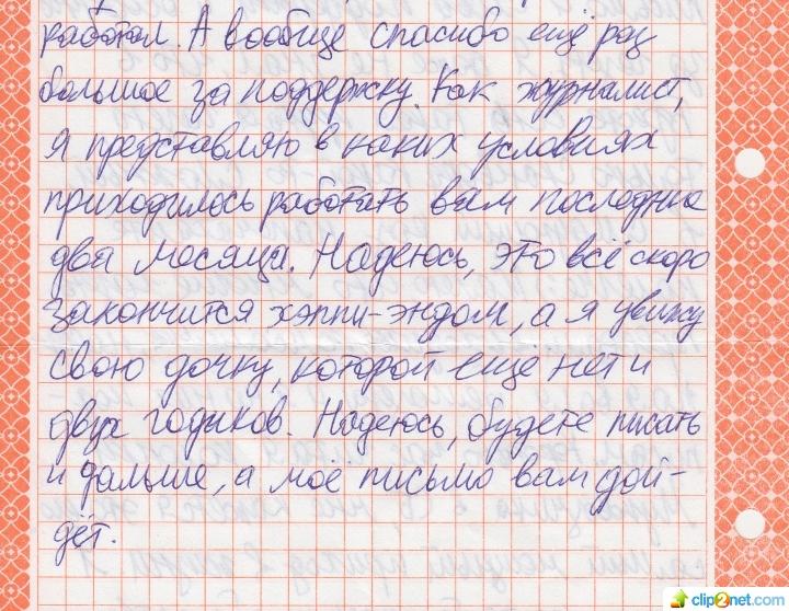 «Только сканворд какой-то сложный, в следующий раз напечатайте полегче, — шутит политзаключенный. — Надеюсь, будете писать и дальше, а мое письмо вам дойдет».