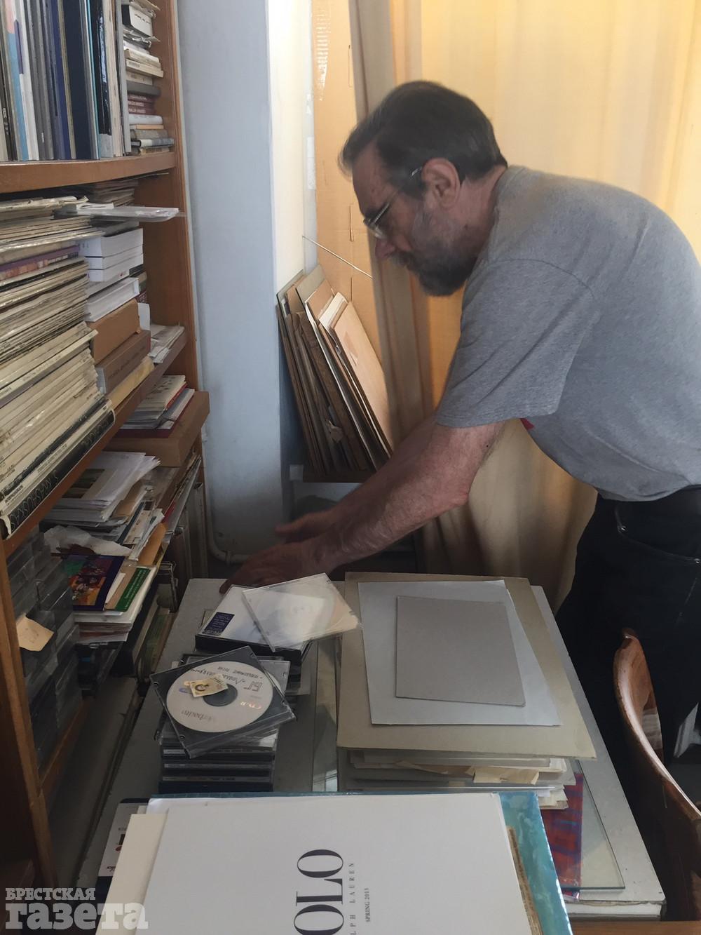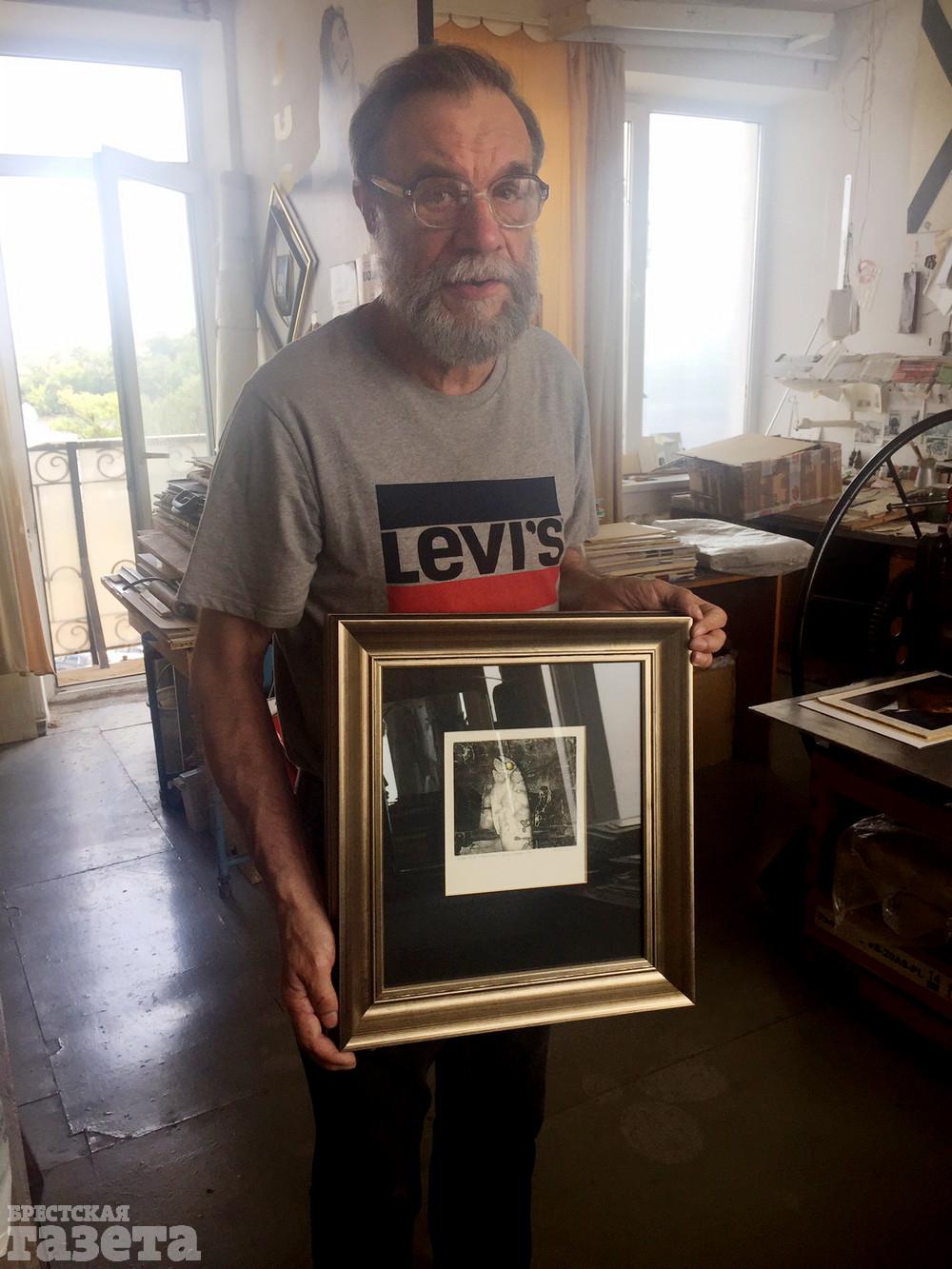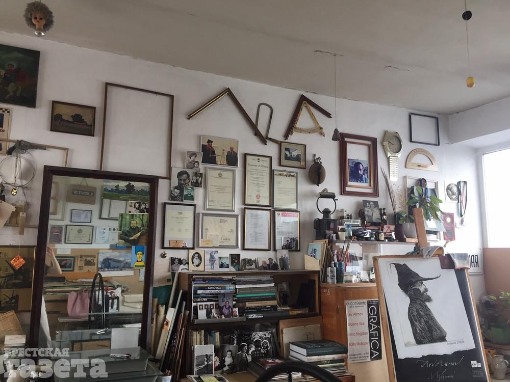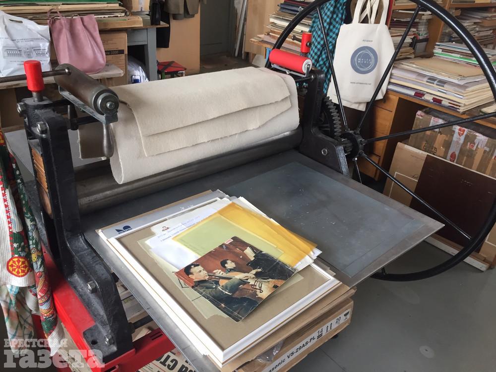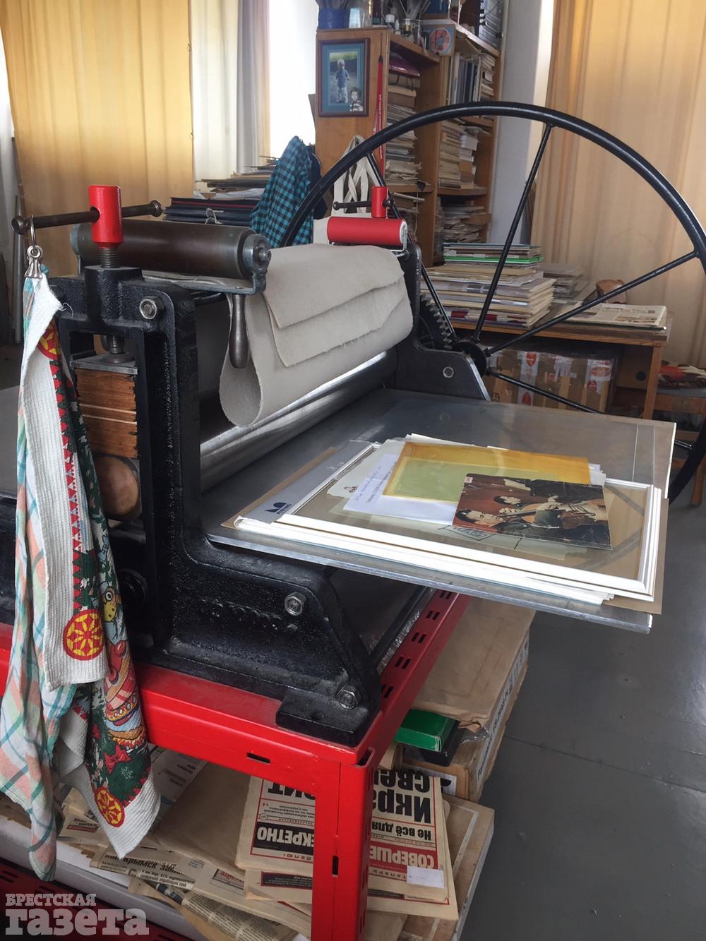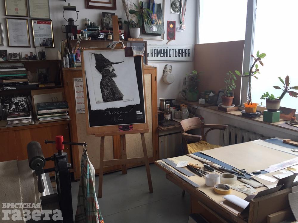 Лев Борисович назначил мне встречу в своей мастерской в многоэтажке на брестской набережной. Арендуемая мансарда с видом на Мухавец стала творческой базой мастера еще 20 лет назад. В центре – «кормилец» – офортный станок мастера. Алимов убежден, что у художника должна быть своя мастерская, а тот, кто рисует на кухне, занимается, скорее, хобби, а не искусством. Приятным музыкальным фоном для нашего разговора послужили композиции американского певца Фрэнка Синатры.