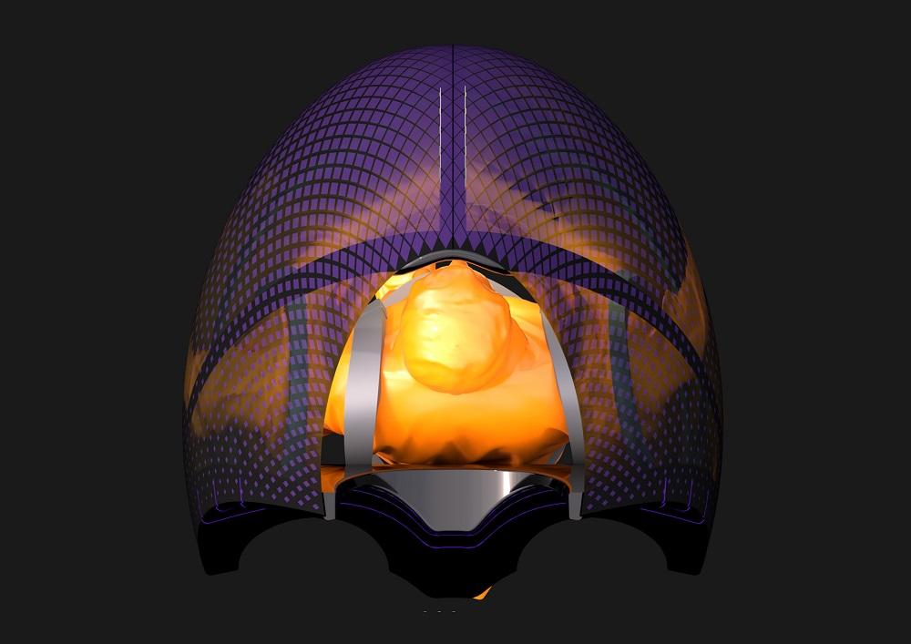 В основании костюма две карбоновых опоры в форме крыльев, которые соединены между собой. Их можно носить как рюкзак. Между опорами натягивается пленка ПВХ, похожая на мембрану крыла летучей мыши. По задумке создателя, провода внутри костюма будут нагреваться до 56°C и вырабатывать ультрафиолетовое излучение, которое простерилизует воздух внутри.