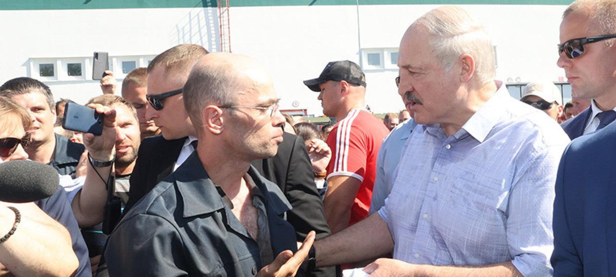 Утром 17 августа президент Беларуси Александр Лукашенко посетил Минский завод колесных тягачей. В конце визита он вышел на улицу к собравшимся рабочим и около 8 минут пытался поговорить с ними и донести свои мысли. Полное видео разговора прислал «Радио Свобода» один из читателей.