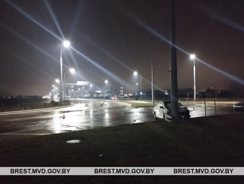 В Бресте 11 февраля около 21.45 23-летний житель Брестского района на Volkswagen ехал по Варшавскому шоссе и на перекрестке с Берестейским шоссе, по предварительной информации, неправильно выбрал безопасную скорость движения, потерял управление и съехал в левый по ходу движения кювет, где врезался в столб.