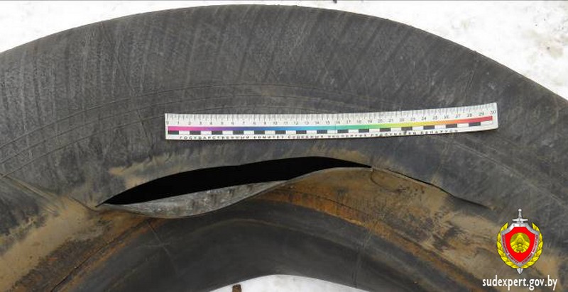 Было установлено, что в результате разгерметизации заднего левого внутреннего колеса было сорвано заднее левое наружное колесо, находящееся в спарке с внутренним. Под давлением колесо вылетело и попало в мужчину.