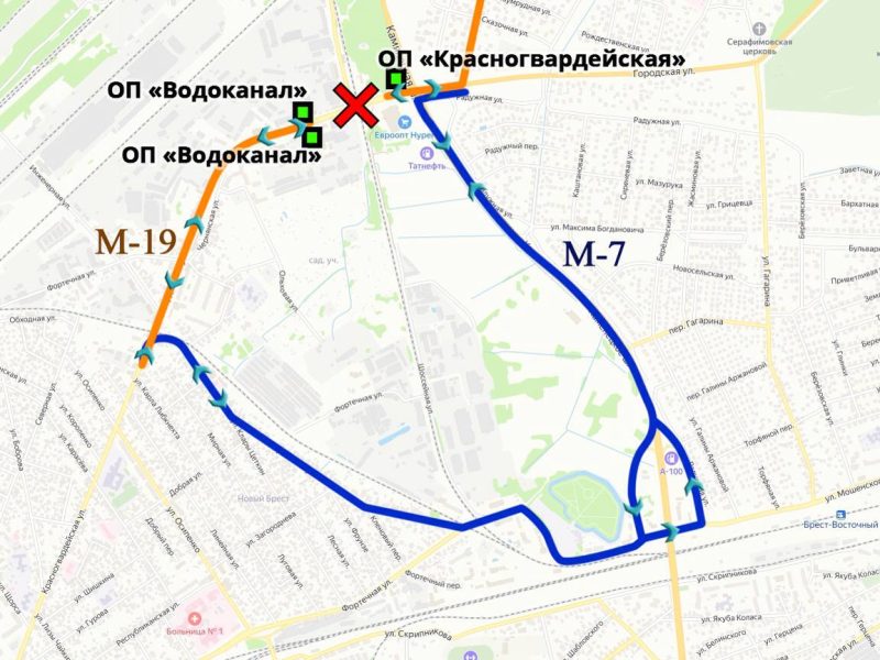 Экспресс-маршрут №7 поедет в объезд через улицы Городскую, Радужную, Шоссейную и Фортечную. А 19-я маршрутка будет курсировать до остановки «Водоканал». Дальше пассажирам нужно будет пройтись до остановки «Красногвардейская», где их заберет другая маршрутка — от «Вересковой» до переезда будет дежурить один бус.