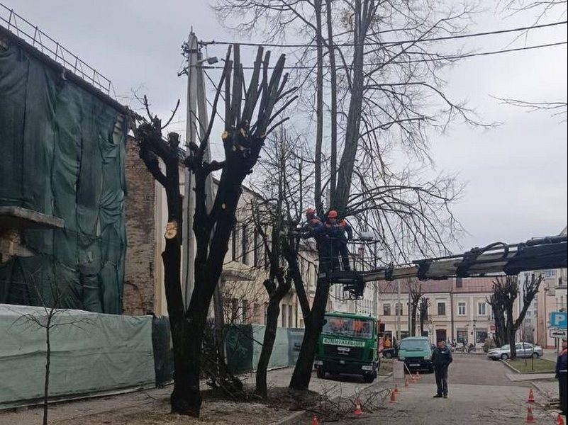 В Бресте обрезают и удаляют деревья на улицах Советской и Островского
