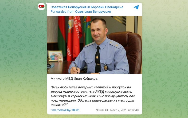 Он прокомментировал пост юмористического телеграм-канала «Советская Белоруссия» про министра МВД Беларуси Ивана Кубракова. Более подробно об уголовном деле, который рассмотрели в Брестском областном суде, можно прочитать здесь.