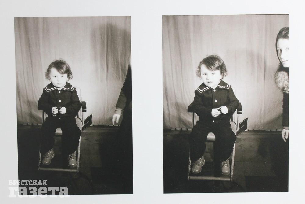 «Все эти касания, изображения рук, ног напомнили мне проект Владимира Шахлевича «Доска почета», где запечатлены передовики колхозов в импровизированных, не студийных условиях. На фотографиях было видно, как коллеги передовиков на заднем плане держат фон. А после я заинтересовался этим феноменом подробнее. В послевоенное время пленка на фотографиях была иная, с другой светочувствительностью. Для того, чтобы заснять ребенка, необходимо было его придержать, чтобы он оставался в неподвижном состоянии, не плакал, не волновался. Зачастую такие «бракованные» снимки не видела даже мама, потому что фотограф выполнял социальный заказ в местном КБО. Снимки кадрировали, а ненужные предметы засветляли».