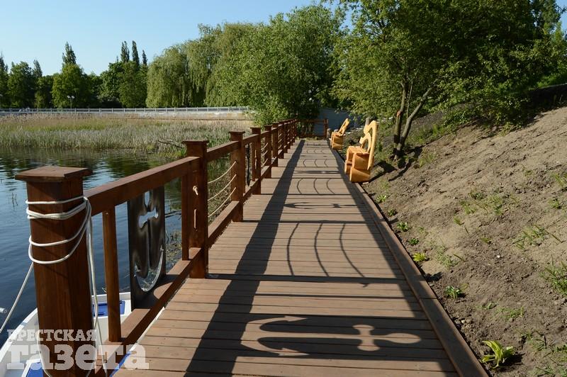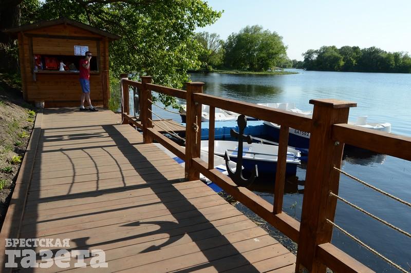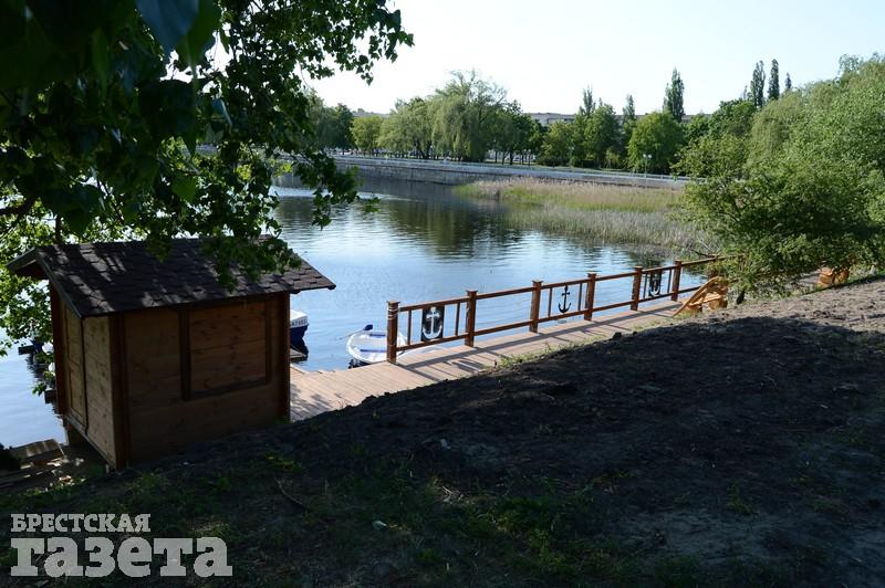 Напомним, лодочная станция на берегу Мухавца расположилась там же, где была и прежняя, слева от пирса, рядом с подъемом на мост. Это место для ведения частного бизнеса выкупил на аукционе индивидуальный предприниматель Александр.