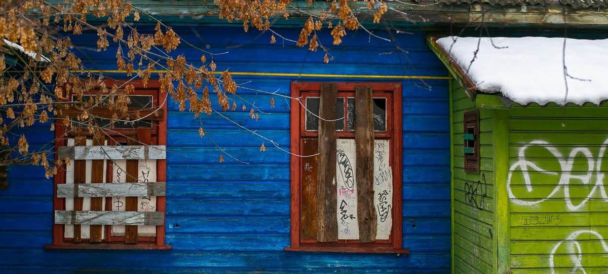 Кроме этой «настенной живописи» во дворе есть немало чего интересного. Предназначенные под снос хоть и ветхие и запущенные, но яркие домики, а также двухэтажные кирпичные гаражи, которых в городе становится все меньше.