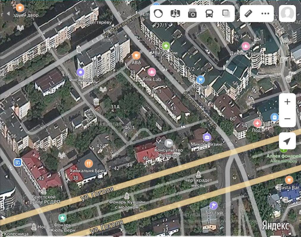 В Бресте на улице Гоголя собираются построить многоэтажки. Проект собираются реализовать в районе домов №№42,42/1, 44 и 46/1. Судя по плану, который выставил Брестский горисполком на своем официальном сайте, эти дома пойдут под снос.