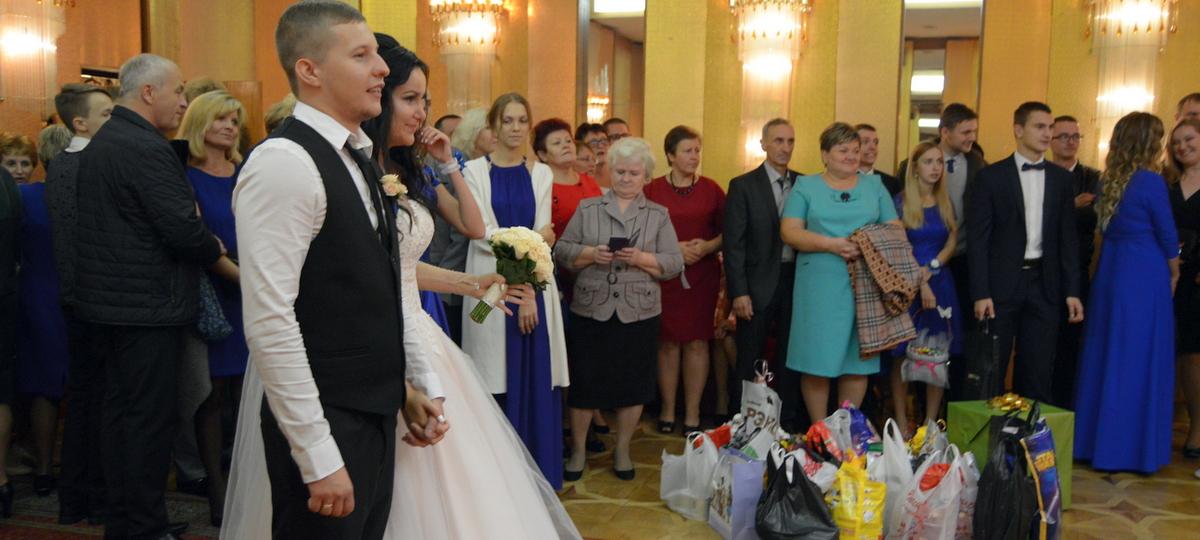 В пятницу 22 сентября в Доме гражданских обрядов в Бресте состоялось бракосочетание Екатерины Василюк и Александра Ажаева. Многие гости принесли в ЗАГС корм для котов и собак. Не обошлось и без цветов. Были гости, которые несли и корм, и букет.