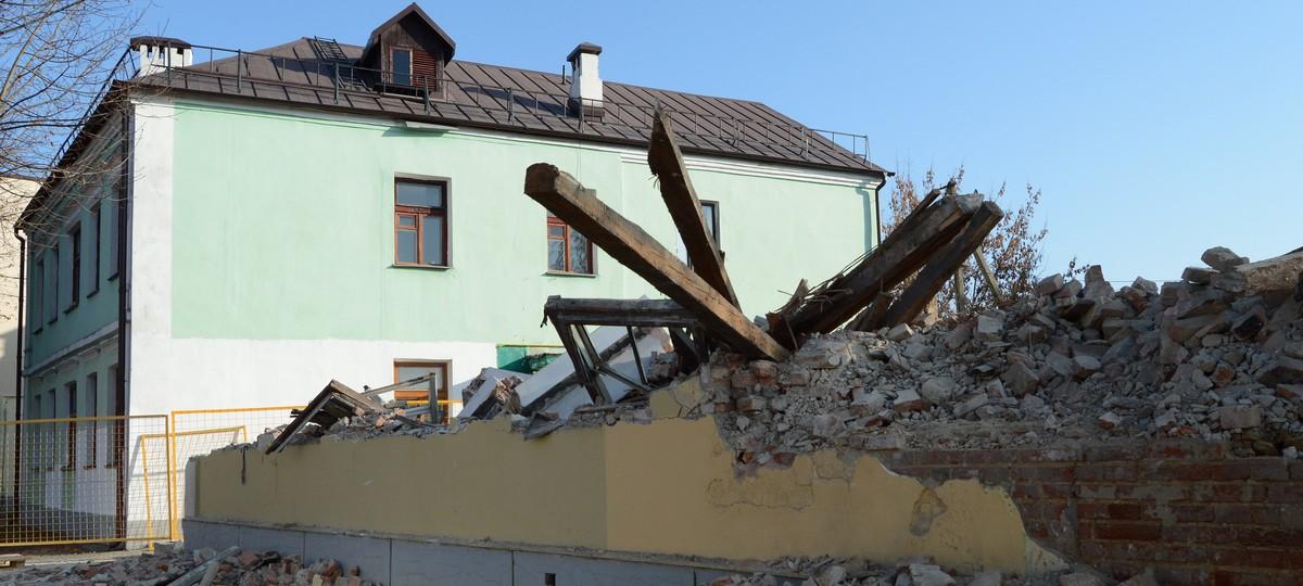Здание довоенной постройки на углу улиц Гоголя и Ленина в Бресте начали сносить еще в пятницу 2 ноября. Уже во вторник 6 ноября на его месте остались лишь кирпичи да доски.