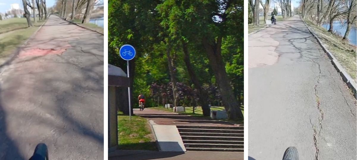 Кстати, еще тогда он ссылался на ту самую боковую велодорожку вдоль реки Мухавец, состояние которой уже тогда оставляло желать лучшего. На участке до площади Церемониалов она внезапно обрывается перед монументом «Жажда». Как дальше передвигаться на двухколесном транспорте — вопрос риторический.