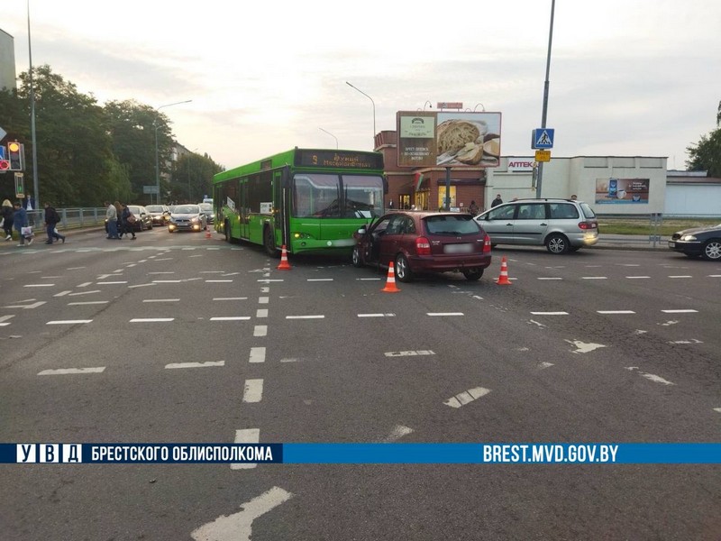 В Бресте на перекрестке столкнулись автобус и легковой автомобиль. Виноват водитель автобуса
