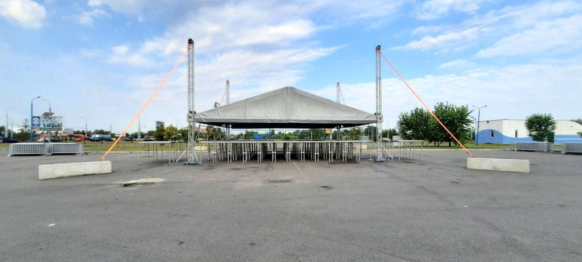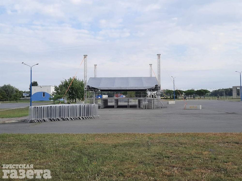 Власти города уже начали монтирование сцены на Гребном канале. Утром 6 августа она выглядела так: